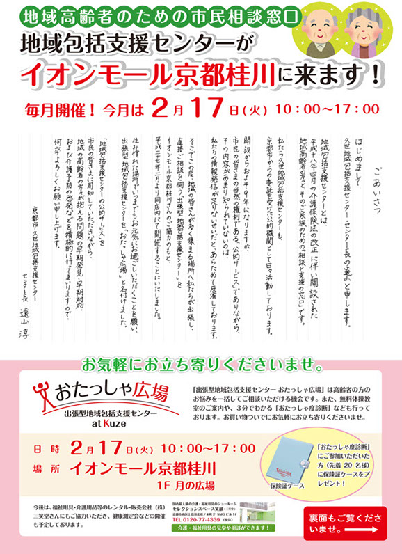 京都 南区久世発! 地域介護・介護予防の市民相談窓口 出張型地域包括支援センター「おたっしゃ広場」