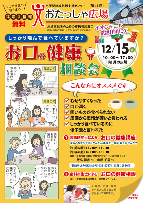 京都 南区久世発! 地域介護・介護予防の市民相談窓口 出張型地域包括支援センター「おたっしゃ広場」