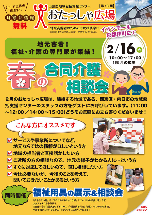 京都 南区久世発! 地域介護・介護予防の市民相談窓口 出張型地域包括支援センター「おたっしゃ広場」