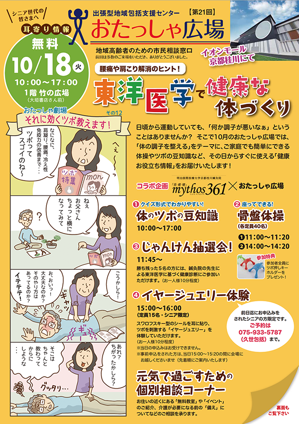 京都 南区久世発! 地域介護・介護予防の市民相談窓口 出張型地域包括支援センター「おたっしゃ広場」