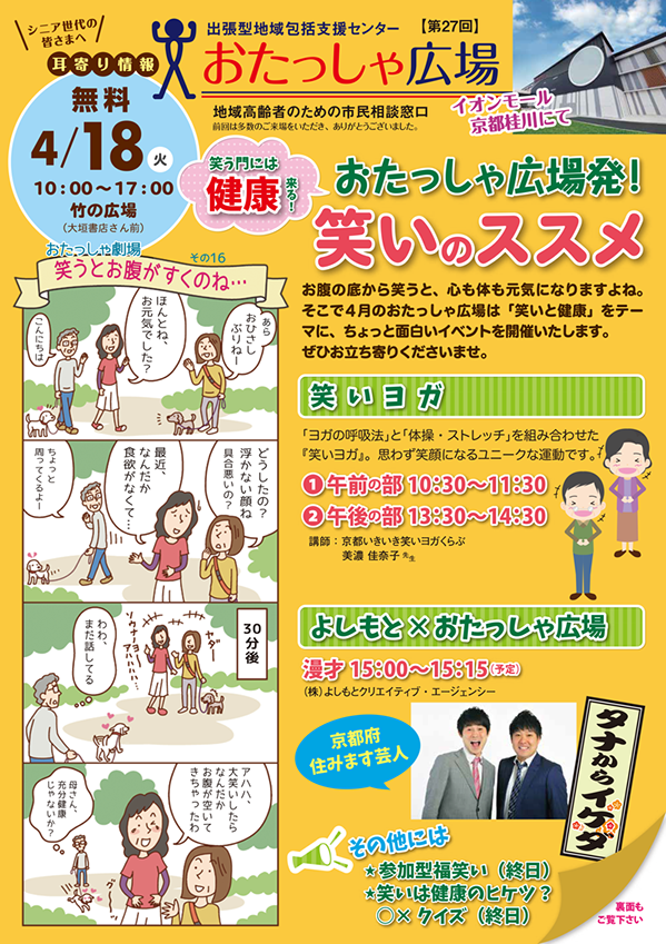 京都 南区久世発! 地域介護・介護予防の市民相談窓口 出張型地域包括支援センター「おたっしゃ広場」