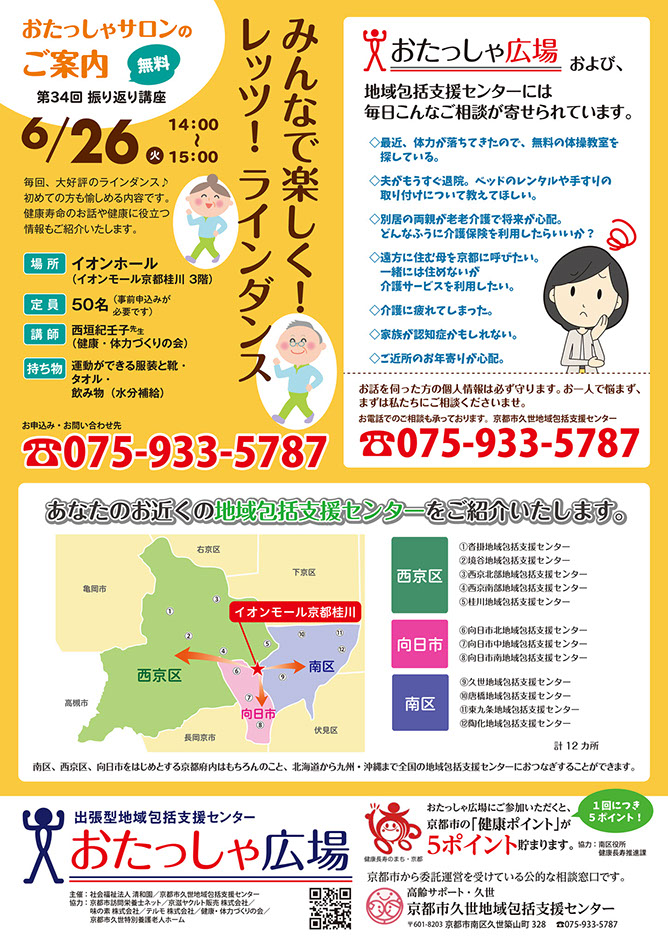 京都 南区久世発! 地域介護・介護予防の市民相談窓口 出張型地域包括支援センター「おたっしゃ広場」
