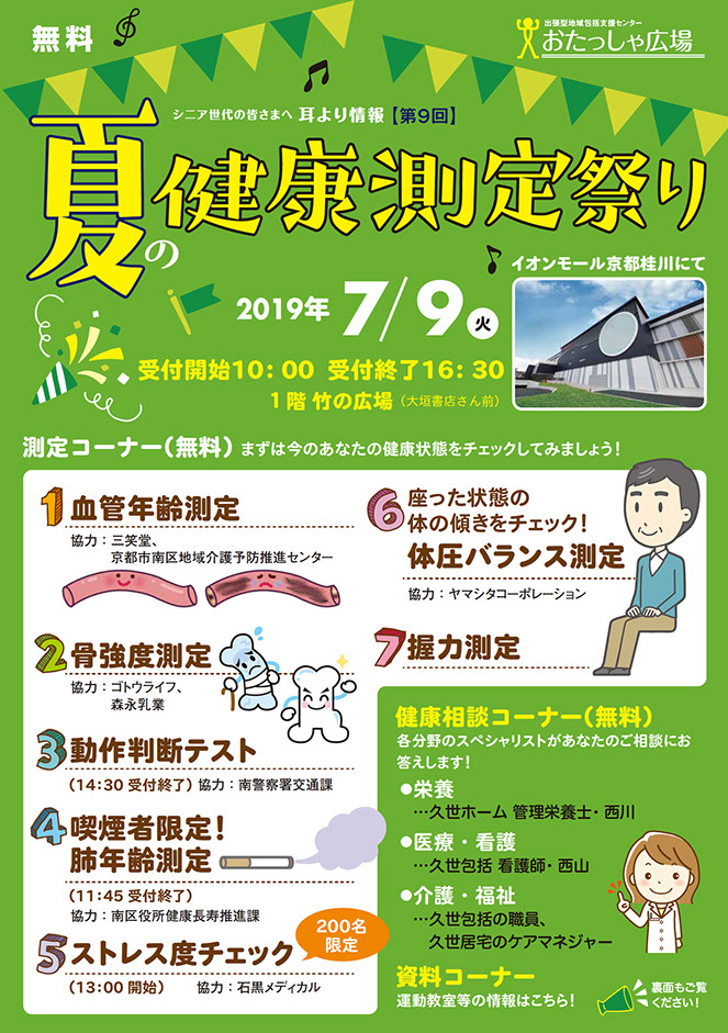 京都 南区久世発! 地域介護・介護予防の市民相談窓口 出張型地域包括支援センター「おたっしゃ広場」